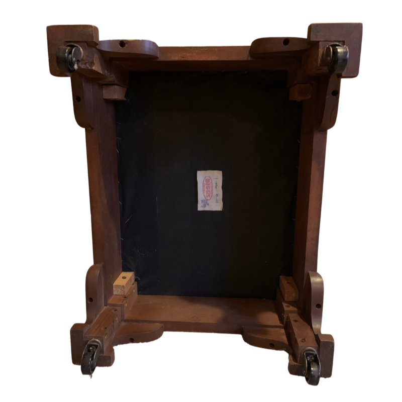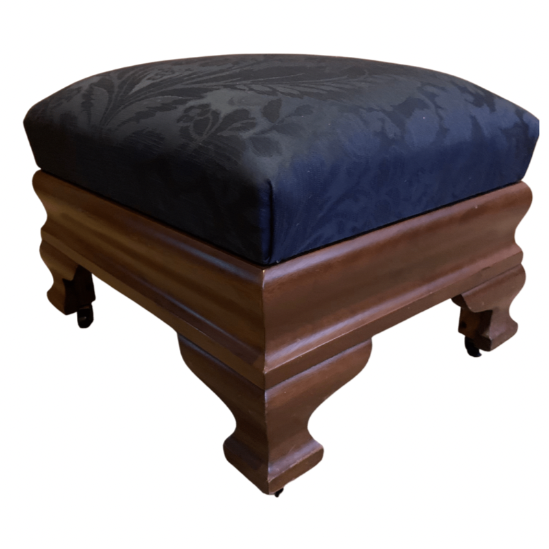 Biggs Blue Damask Mahogany Ottoman with Brass Casters